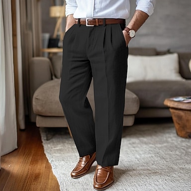 Homens Calças de linho Calças Calça verão Calças Plissadas Bolso frontal Perna reta Tecido Conforto Respirável Comprimento total Ao ar livre Casual Diário Férias Moda Preto Branco Sem Elasticidade
