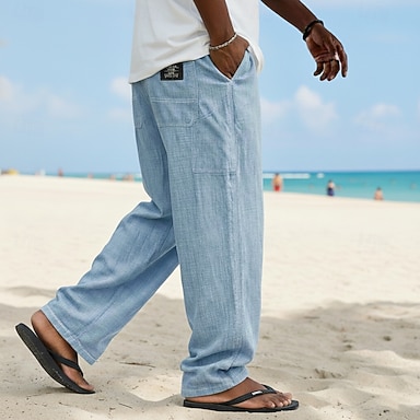 Homens Calças de linho Calças Calça verão Calças largas Calças de praia Com Cordão Cintura elástica Perna reta Côr Sólida Confortável Respirável Comprimento total Diário Praia Feriado Férias Moda
