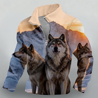 Homens Lobo Waffle Moletom Moda Diário Caça Colarinho Chinês Quarter Zip Ao ar livre Streetwear Viagem Campismo Laranja cáqui Zip Up Outono Inverno Designer S M L XL XXL XXXL