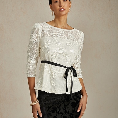 Mulheres Camisa de renda Blusa Tops elegantes Tops de chiffon Barra Assimétrica Côr Sólida Floral Gráfico Elegante à moda Básico Manga 3/4 Sino Decote Canoa Tops regulares Diário Trabalho Convidado