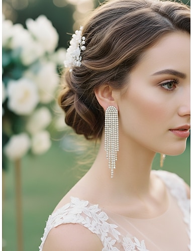 brincos de borla de strass femininos - joias brilhantes para casamentos, festas e eventos noturnos