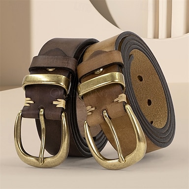Homens Cinto de couro genuíno Cinto Fivela de pino Borda Ondulada Cobre Derme Vintage Durável Ajustável Tecido Azul Preto Ao ar livre Diário Cinto para a Cintura