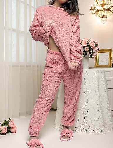 Mulheres Pijamas Conjunto de Pijama Flanela Quente Moda Gráfico Cintura elástica Calça Casa Diário Manga Longa Gola Redonda Rosa Outono Inverno Ajuste Largo