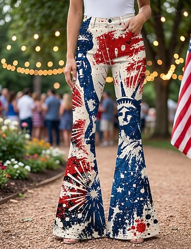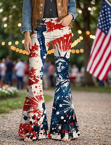 250º Aniversário EUA Retro Vintage Anos 70 Calças Calça boca de sino Hippie Discoteca Cintura Alta Fantasia Mulheres Baile de Máscaras 4 de julho Festa Dia da Independência Adulto Calças