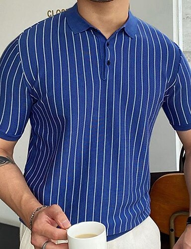 Homens Polos de botões Camisa de golfe Casual Esportes Lapela Manga Curta Moda Básico Riscas Patchwork Botões Verão Azul Polos de botões