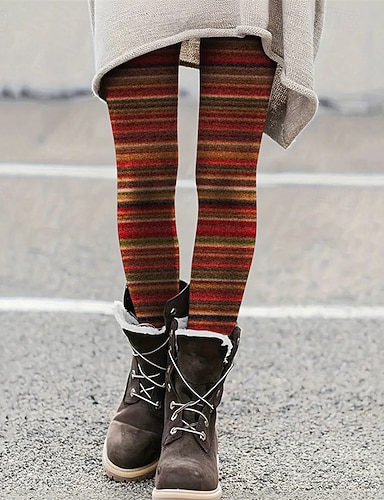 Mulheres Calças Leggings Leggings aconchegantes Roupa de rua Casual Comprimento total Cintura Alta Listrado Cintura elástica Imprimir Respirabilidade Confortável Com Stretch Férias Rua Roupa Diária