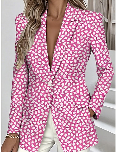 Mulheres Blazer Manter Quente Bolsos Botões Moda Diário Casual Geométrica Formal Casual Padrão Lapela Chanfrada Normal Manga Longa agasalhos Amarelo Rosa Azul Primavera Outono
