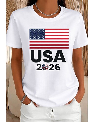 Mulheres Camiseta Imprimir Gráfico Time de futebol à moda Clássico Casual Manga Curta Gola Redonda Tops regulares Diário Azul Branco Rosa Vermelho Roxo Verão Primavera