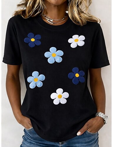 Mulheres Camiseta Imprimir Floral Gráfico Plantas Moda à moda Clássico Manga Curta Gola Redonda Decote Redondo Tops regulares Casual Diário Final de semana Azul Marron Escuro Verde com bege Preto