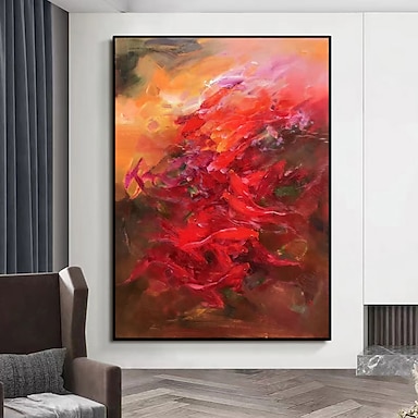 Pintura a óleo pintada à mão arte de parede abstrata flores vermelhas pintura em tela decoração de casa decoração moldura esticada pronta para pendurar