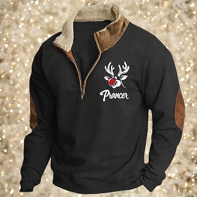 Homens Moletom Moletom Waffle Moletom com zíper Preto Cinzento Escuro Meio Zíper Rena Patchwork Imprimir Textura Natal Diário Feriado Roupa de rua Casual Outono Primavera & Outono Roupa Moletons