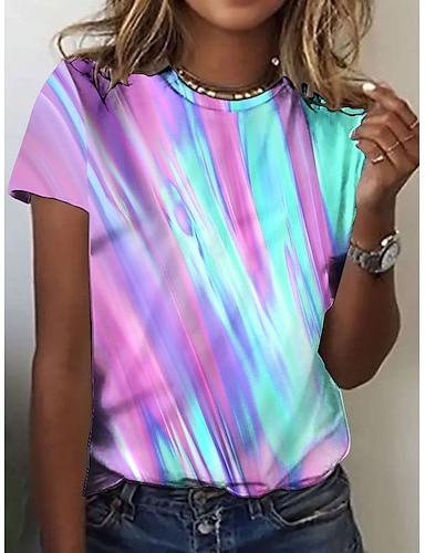 Mulheres Camiseta T-shirt Imprimir Gráfico Spot de Luz Multi-Colorida Moda Clássico Casual Manga Curta Assimétrico Tops regulares Diário Para Noite Final de semana Azul Branco Rosa Verão Primavera
