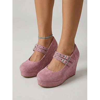 Sapatos Mary Jane de camurça rosa para mulheres, com plataforma e fivela dupla, ideais para festas no jardim. &eventos ao ar livre