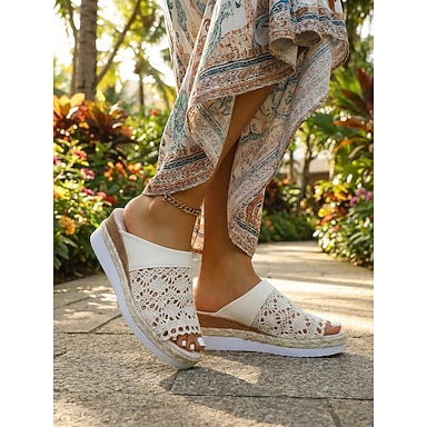 Sandálias femininas brancas de renda com plataforma - elegantes sandálias de crochê para cruzeiros e casamentos na praia. &escapadelas em ilhas tropicais