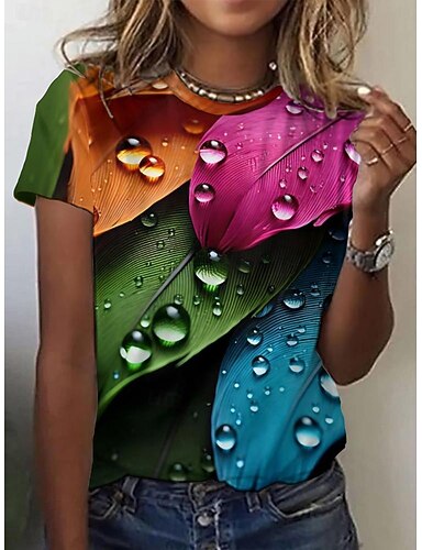 Mulheres Camiseta Imprimir Âmbar Gráfico Abstrato à moda Clássico Casual Manga Curta Gola Redonda Decote Redondo Tops regulares Diário Arco-íris Verão Primavera