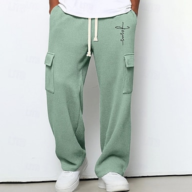 Homens Calça de moletom cargo Calças Esportivas Calças Calça de moletom de perna reta Calça Waffle Com Cordão Bolsos Cintura elástica Cruz Conforto Macio Ao ar livre Casual Diário Moda Estilo Clássico
