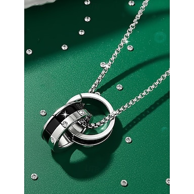 Colar masculino com pingente de aço titânio para o Natal – anéis elegantes entrelaçados com detalhes em diamante – presente de joia de Natal perfeito para homens