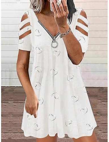 Mulheres Minivestido Vestido casual Vestido estampado Elegante Moda Moderno Ao ar livre Férias Para Noite Ajuste Largo Coração Manga Curta Decote V Azul Branco Rosa Roxo Verão Primavera