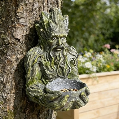 Escultura de comedouro para pássaros em formato de árvore antiga, decoração de jardim externa com um toque lúdico de homem-árvore e suporte oculto em forma de fechadura, feita de resina, ideal para