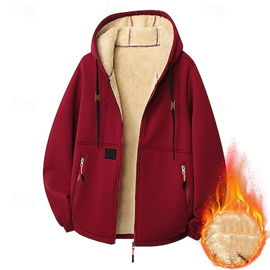 Homens Moletom Full Zip Hoodie Moletom com zíper Moletons com zíper Moletom com capuz de lã Sherpa Preto Verde Tropa Vermelho Café Com Capuz Tecido Com Cordão Zip Up Bolsos Desportos e Ar livre