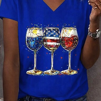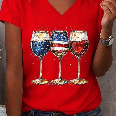Dia da Independência Americana Mulheres Camiseta Imprimir Gráfico Bandeira à moda Clássico Casual Manga Curta Gola Redonda Decote Redondo Tops regulares Diário Azul Vermelho Vermelho / Azul Verão