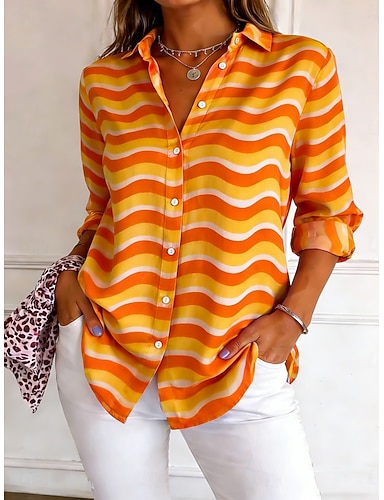 Mulheres Camisa Social camisa de botão Camisa casual camisa de praia Imprimir Gráfico Listrado à moda Clássico Casual Manga Longa Colarinho de Camisa Tops regulares Diário Feriado Para Noite Preto