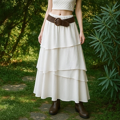Mulheres Saia de férias Elegante Moda Casual Longo Cintura Alta Saias Tecido Patchwork Com Stretch Diário Férias Bege Verão Fibra Sintética Viscose