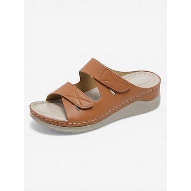 sandálias femininas com estampa de folhas e blocos de cores – chinelos de sola macia para usar no jardim, no brunch e em passeios de verão