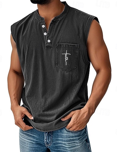 Homens Top de colete Camiseta Interior camisa sem manga Sem Manga Henley Todas as Estações Fé Moda Designer Bolsos Tingimento em peça Férias Rua Para Noite Preto Rosa Azul Marinho Escuro Top Tee para