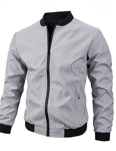 Homens jaqueta leve jaqueta de verão Jaqueta Bomber Jaqueta Corta-Vento Ao ar livre Férias Quente Outono Inverno Tecido Moda Roupa de rua Colarinho Chinês Padrão Preto Cinzento Casaco