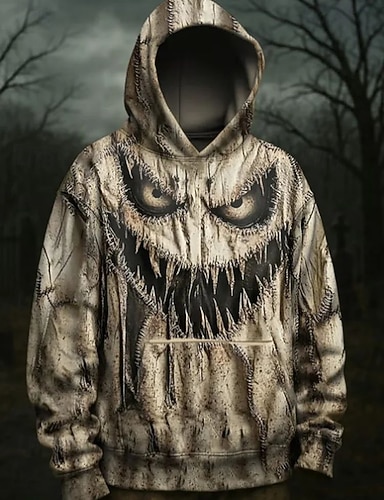 Halloween Homens Monstro Moletom Moda Diário Casual Manga Longa Com Capuz Férias Festa Streetwear Festival cáqui Com Cordão Bolsos Estampado Outono Inverno Designer S M L XL 2XL 3XL