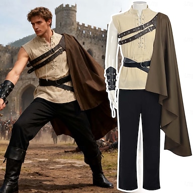 Medieval Renascentista Fantasia fantasia Guerreiro Cavalheiro Viking Fantasia Homens Viking Fantasia Dia Das Bruxas Carnaval Espetáculo LARP Ren Faire Adulto Camisa Calças Cinto