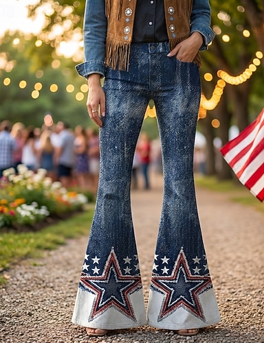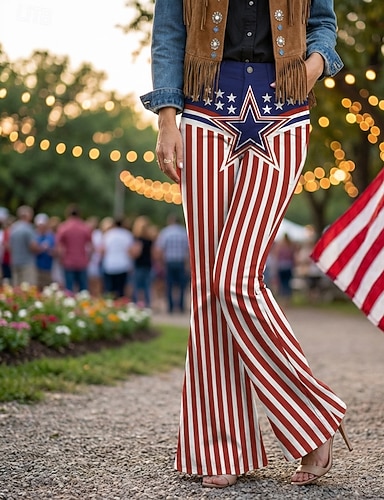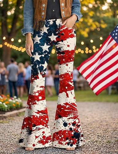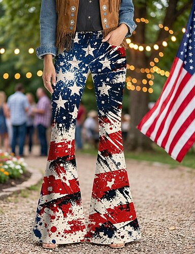 250º Aniversário EUA Retro Vintage Anos 70 Calças Calça boca de sino Hippie Discoteca Cintura Alta Fantasia Mulheres Baile de Máscaras 4 de julho Festa Dia da Independência Adulto Calças