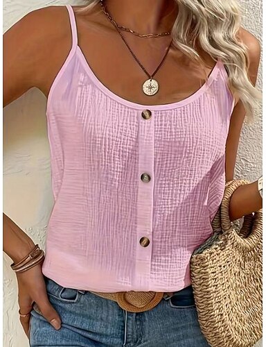 Mulheres Malha Íntima Botões Frente Única Côr Sólida à moda Casual Sem Manga Com Alças Tops regulares Diário Amarelo Rosa Fúcsia Laranja Verde Verão