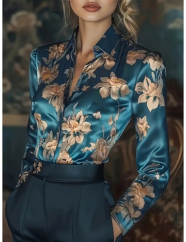 Mulheres Camisas de trabalho Floral Gráfico Elegante à moda Casual Manga Longa Colarinho de Camisa Tops regulares Diário Trabalho Traje de festa para noite Azul Vinho Roxo Fúcsia Primavera / Outono