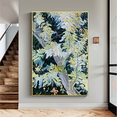 pintura de árvore florescendo colorida feita à mão 100% pintada à mão pintura de árvore de flor texturizada pintura a óleo de árvore abstrata acrílica pintura de decoração de parede para sala de estar