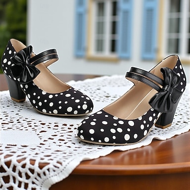 sapatos mary jane femininos de bolinhas azuis – sapatos retrô de salto médio com tira de fivela para roupas de inspiração vintage e festas de dança