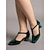 Sapatos femininos mary jane de veludo verde com tiras em T e salto bloco – sapatos sociais de inspiração vintage para festas e eventos formais