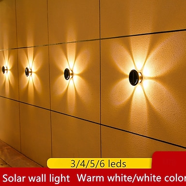 Conjunto de 2 luminárias solares de parede à prova d'água, super brilhantes, com proteção solar, para jardim, redondas, com iluminação LED para iluminação ambiente.