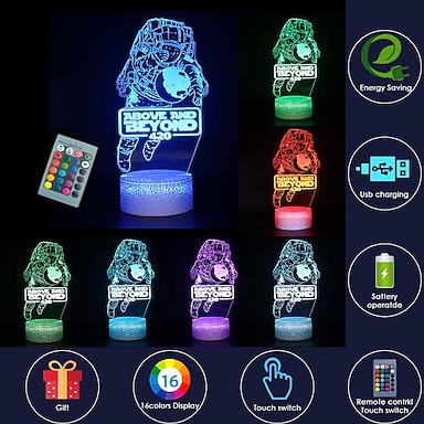 astronauta 3d luz noturna para crianças espaço exterior 3d ilusão luz espaço decoração16 cores controle remoto dimmablespace brinquedos meninos e meninas de um ano de idade