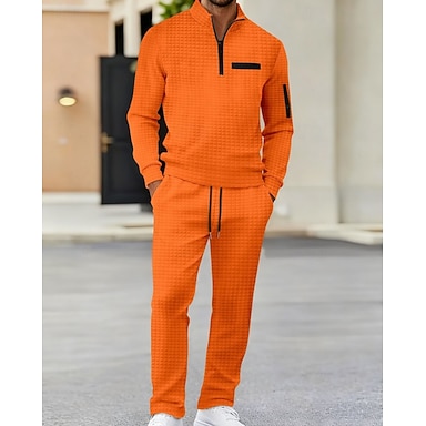 Homens Camisas Polo Waffle Pólo Férias Rua Quarter Zip Manga Longa Moda Básico Bloco de cor Patchwork 2 Peças Primavera Outono Normal Preto Branco Azul Marinha Laranja Cinzento Escuro Cinzento
