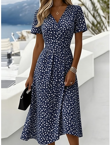 Mulheres Vestido midi Vestido de verão Férias Casual Boho Diário Praia Normal Floral Meia Manga Gola Redonda Azul Vermelho Azul Escuro Bege Verão Primavera