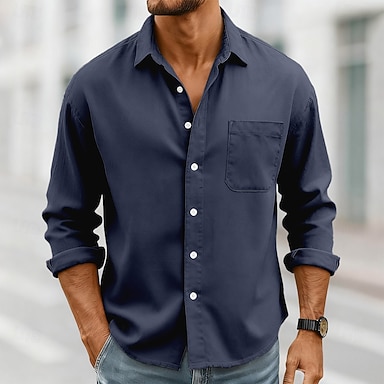 Homens Camisa Social Camisa casual camisa de botão Preto Branco Rosa Vermelho Azul Marinha Manga Longa Tecido Lapela Casual Diário Bolso frontal Roupa Elegante Moda Casual