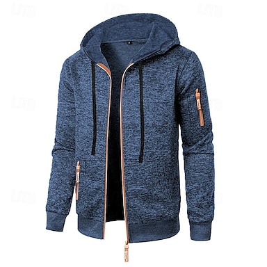 Homens Moletom Full Zip Hoodie Moletom Tático Azul denim Preto Azul Marinha Cinzento Escuro Com Capuz Tecido Zíper Desportos e Ar livre Casual Diário Roupa de rua Legal Roupa de Esporte Primavera