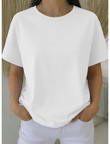 Mulheres Camisa Social Blusa Camisa de algodão Linho de algodão sintético Tecido à moda Clássico Moderno Manga Curta Gola Redonda Tops regulares Diário Feriado Para Noite Branco Rosa Azul Céu Verde