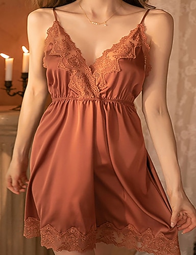 Mulheres Loungewear Camisola Moda Casual Macia Cor imaculada Renda Patchwork Vestidos Casa Férias Sem Manga Decote V Lotus Pink Preto Branco Verde Claro Rosa Verão Primavera Outono Normal