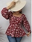 Mulheres Blusa Imprimir Floral Boêmia Férias à moda Manga Longa Decote Quadrado Tops longos Diário Ao ar livre Praia Vermelho Verão Primavera Outono