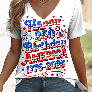 Dia da Independência Aniversário Americano Camiseta Feminina Estampada Gráfica Bandeira Vintage Estilosa Clássica Manga Curta Decote em V Tops Regulares Diários Azul Verão Primavera