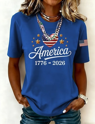Dia da Independência Aniversário Americano Camiseta Patriótica Feminina Gráfica Bandeira Nacional Vintage Estilosa Clássica Manga Curta Gola Redonda Diário Fim de Semana Impressão Azul Vermelho