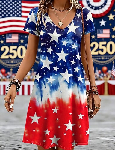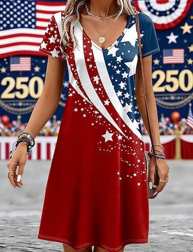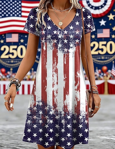 Dia da Independência Aniversário Americano Camiseta Feminina Estampada Gráfica Bandeira Vintage Estilosa Clássica Manga Curta Decote em V Tops Regulares Diários Vermelho Verão Primavera